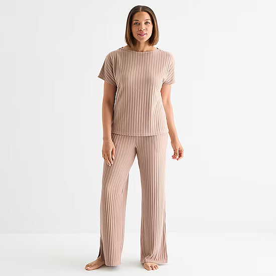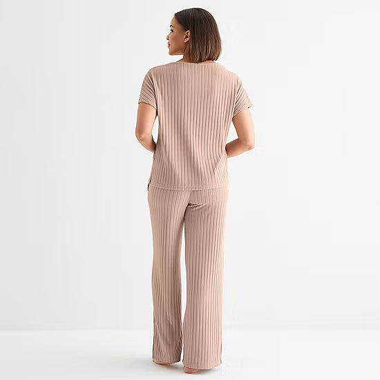 Liz Claiborne Womens Rib Round Neck Short Sleeve 2-pc. Pajama Sets