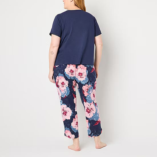Liz Claiborne Womens V-Neck Short Sleeve 2-pc. Plus Pajama Sets